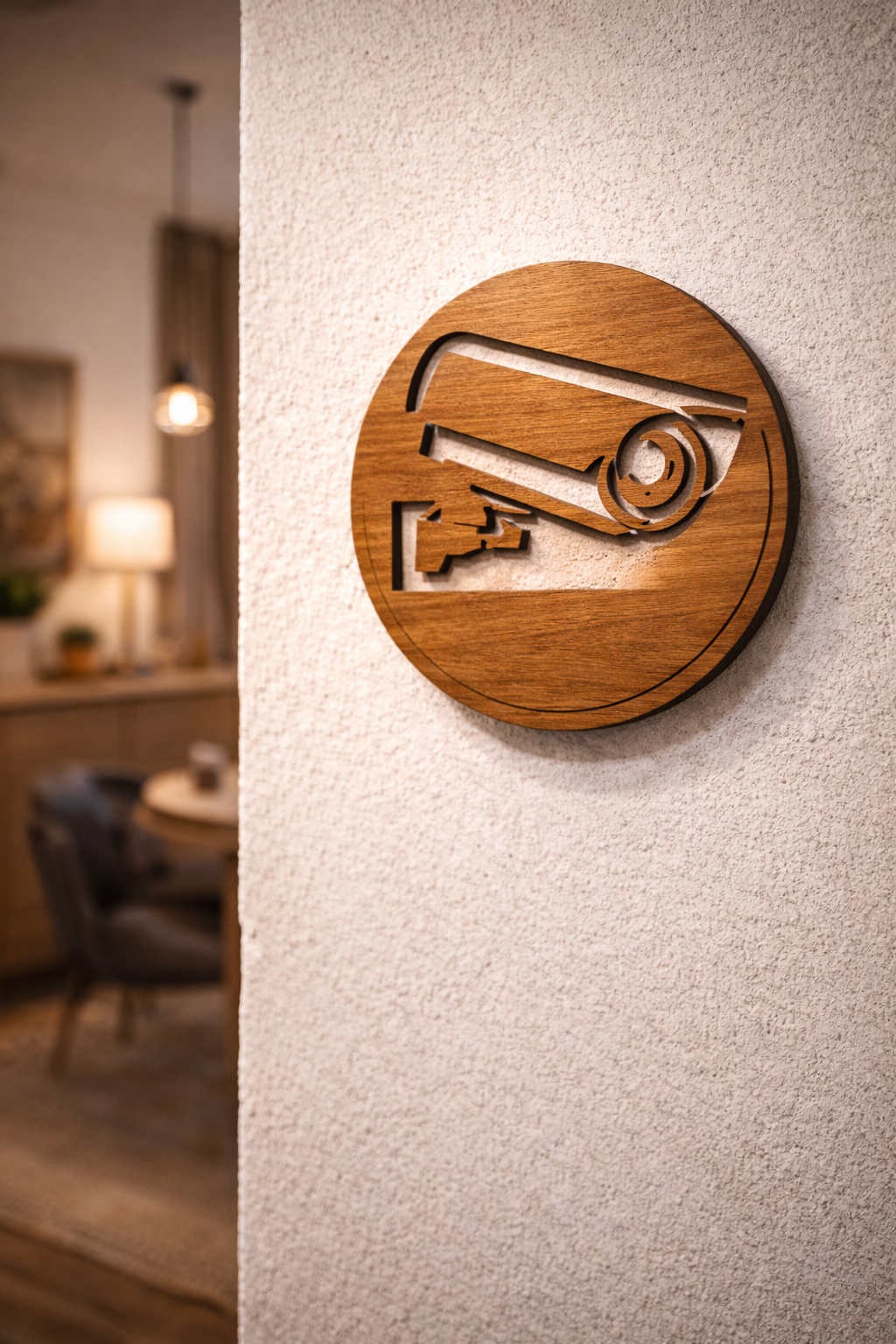 Güvenlik Kamerası Levhası 13 cm 3 mm Ahşap Desenli Lazer Kesim Dekoratif Duvar Tabelası