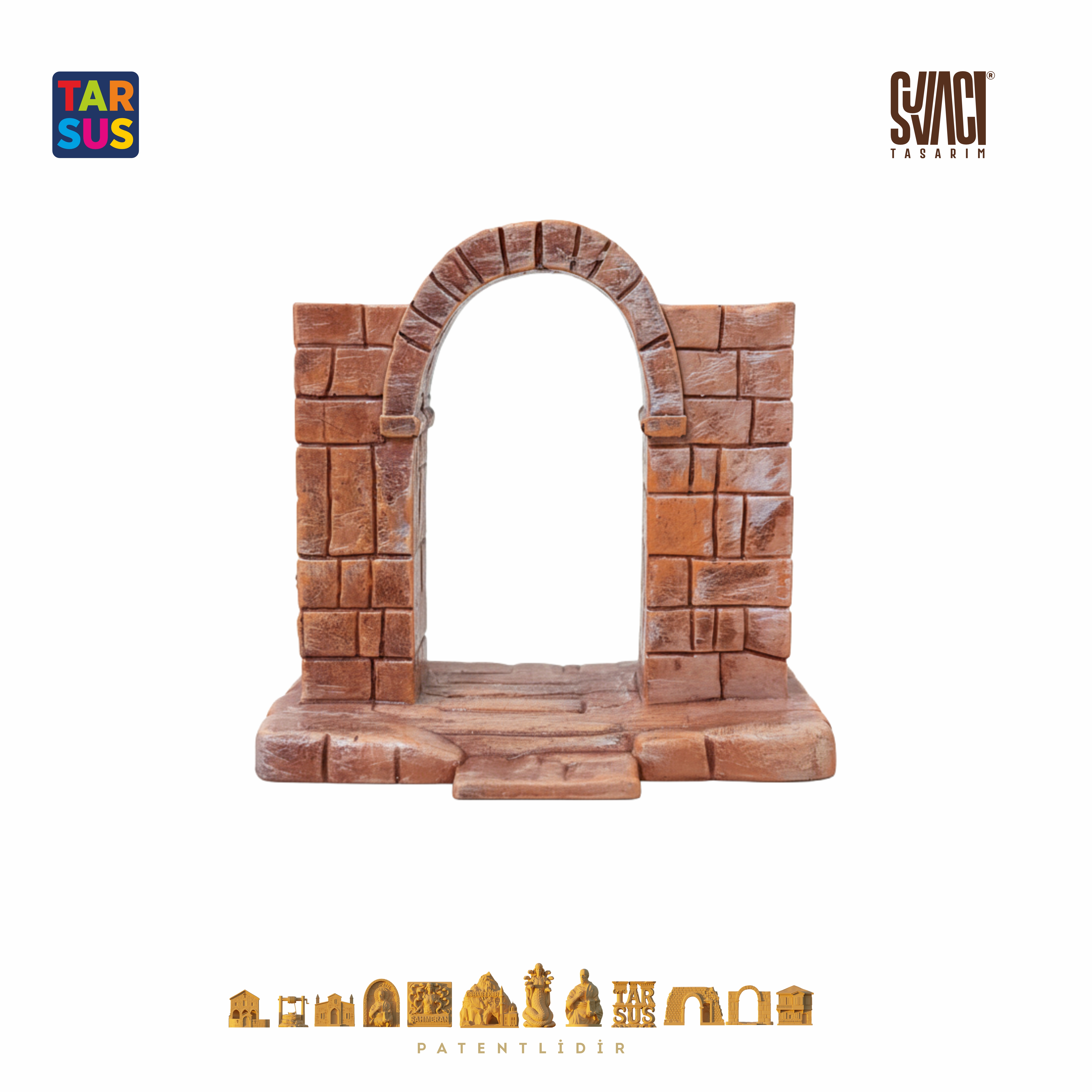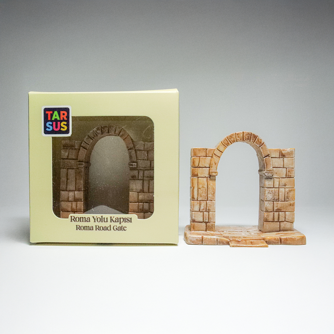 Tarsus’un binlerce yıllık tarihini yansıtan Roma Yolu Kapısı, el işçiliğiyle hazırlanmış özel bir biblo olarak yeniden hayat buluyor. Antik Roma mimarisine ait taş dokuları, kemer yapısı ve tarihî atmosferi detaylı polyester döküm tekniğiyle ustalıkla modellenmiştir.